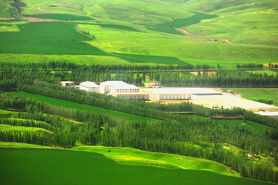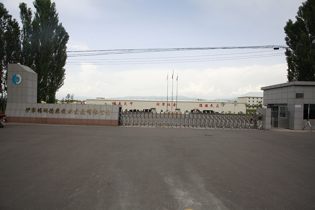 新源農(nóng)投生產(chǎn)基地:伊犁福潤德農(nóng)牧業(yè)發(fā)展有限公司,是新疆福潤德農(nóng)業(yè)投資有限公司全資子公司, 2011年在新源縣工商局注冊成立,注冊資金2.6億元,公司位于新源縣那拉提機場以東3公里,毗鄰世界四大草 原之一的那拉提草原,占地面積265畝,于2012年7月開工建設(shè),一期投資5.8億元人民幣,建筑面積49281平 方米,主要包括屠宰分割車間、熟食加工車間、展廳、靜養(yǎng)區(qū)、萬噸級冷庫、辦公區(qū)、員工宿舍及食堂、專家 樓、游泳館等娛樂活動區(qū)、鍋爐房、污水處理等物業(yè)保障區(qū)。2014年8月建成投產(chǎn),主要產(chǎn)品有排酸冷鮮冷凍 牛羊肉、牛羊肉卷、牛羊肉餡、羊肉串、速凍水餃、丸子、牛肉醬、灌腸、醬鹵熟食、牛肉干等休閑食品共百 余種產(chǎn)品。屠宰加工一廠年屠宰加工羊100萬只、牛5萬頭,冷庫容積1萬噸,熟食加工二廠年加工熟食3.9萬多 噸。新源工廠屠宰加工生產(chǎn)線,是集牛羊屠宰、排酸、加工、熟食、冷鏈、銷售為一體的畜牧產(chǎn)業(yè)基地,也是 目前國內(nèi)規(guī)模較大、標準較高的牛羊肉屠宰加工生產(chǎn)線。
